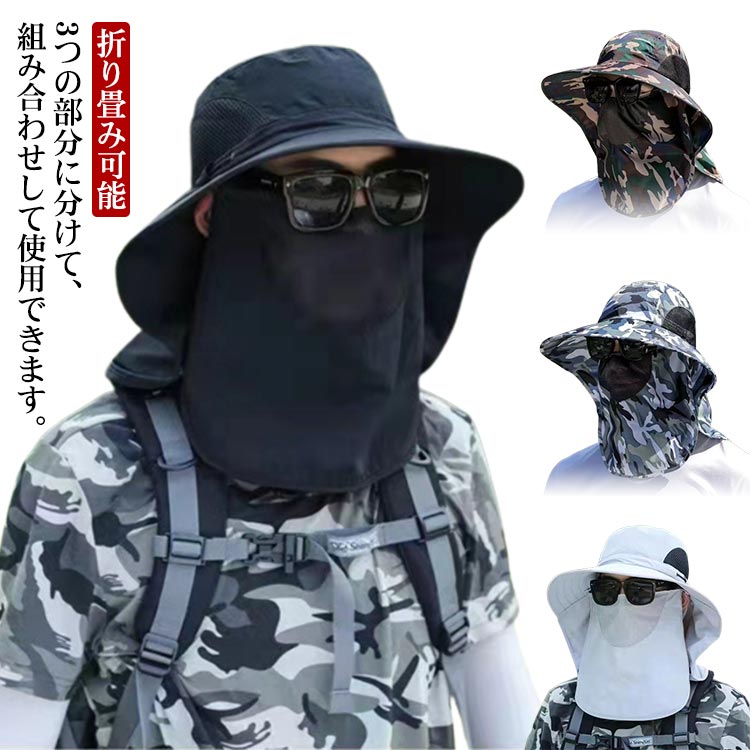 帽子 フェイスカバー 男女兼用 マスク 紫外線カット 日よけ 紫外線対策 折りたたみ 洗える 紫外線予防 ガード ハット