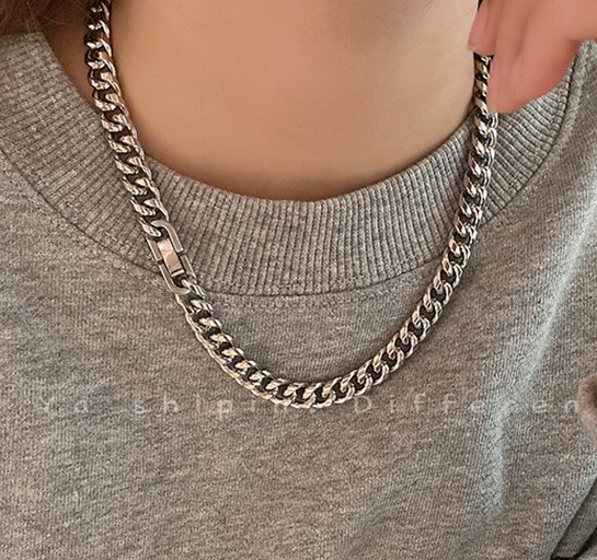 シルバーチェーンネックレスダンス衣装ヒップホップHIPHOPレディースメンズガールズキッズストリート個性的奇抜銀kpop大人太い短い長い長めおしゃれかっこいいアクセサリーチョーカーシンプル軽い軽量大ぶ