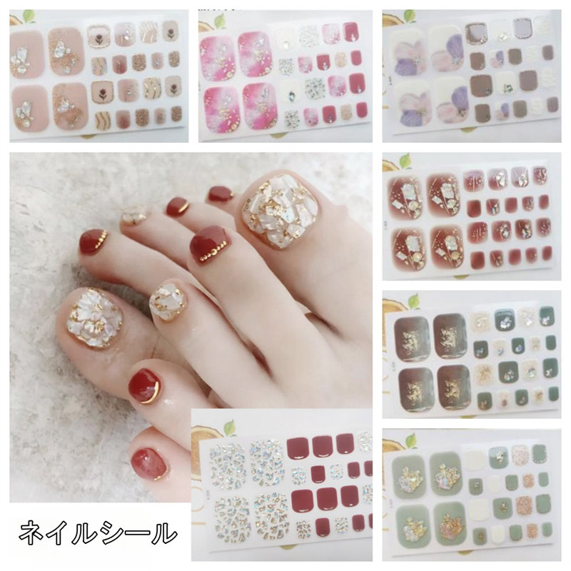 16色展開 ネイルシール貼るだけでジェルネイル完成 ネイルシール フットネイル レディース 女性 ネイル用品 足の爪用 デザインチップ セルフネイル かわいい おしゃれ