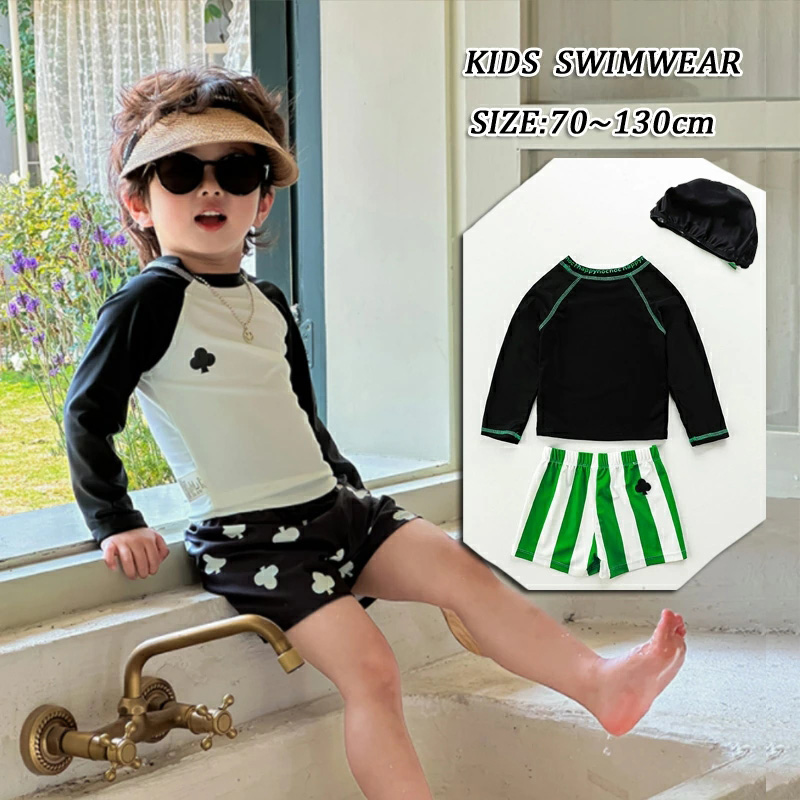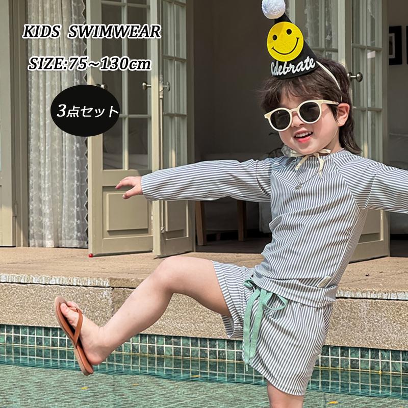 ベビー水着男の子セパレートラッシュガード可愛い男の子水着 スイムウェア120cm 130cm キッズ 水着タンキニ セパレート ビキニ 水着セットボーダー柄