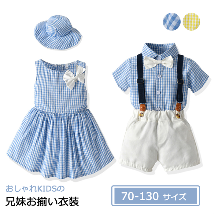 子供服 男の子フォーマルスーツ 女の子 ワンピース 夏 セットアップ おしゃれ カジュアル プレゼント 姉妹お揃い 兄弟お揃い かわいいい 70-130