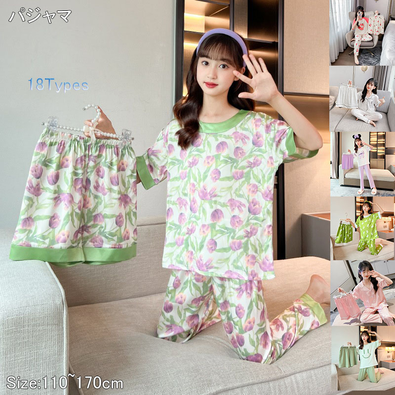 パジャマ 子供服 部屋着 綿 女の子 上下セット 三点セット キッズ 夏 キッズ 部屋着 女の子 スウェット 上下セット 半袖 コットン ルームウェア ジュニア可愛い 部屋着 子供用 柔らか 110c