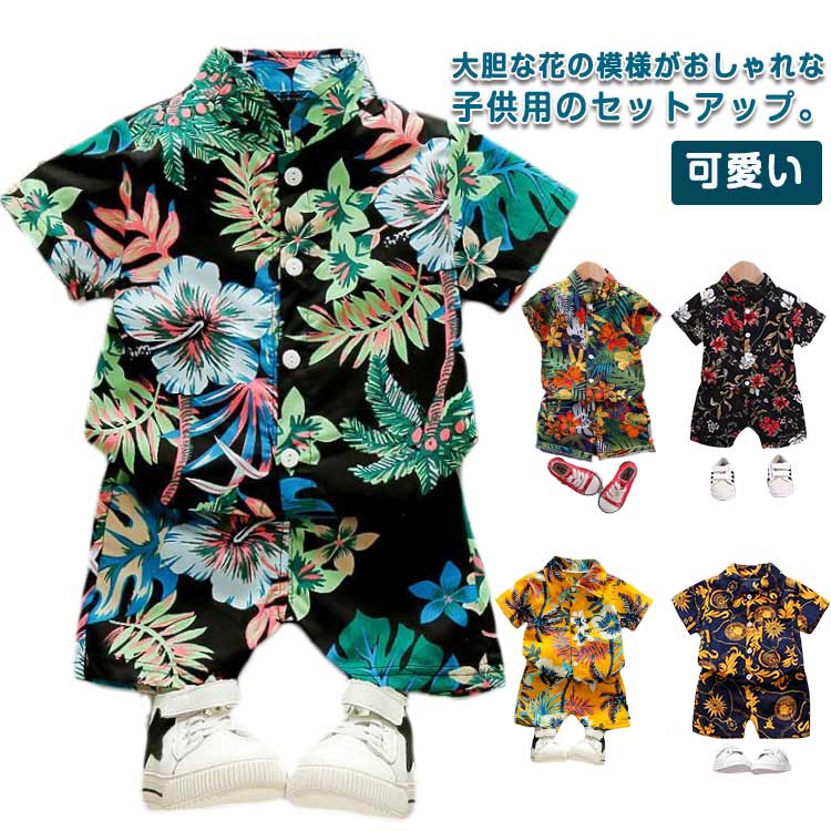 可愛い 半袖 フラワー トップス キッズ ハーフパンツ 90 ボトムス シャツ 男の子 女の子 アロハシャツ 半ズボン 上下セット 子ども服 半ズボン 子供服 総柄 華やか かわいい キュート おしゃ