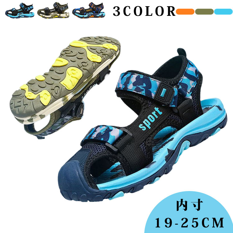 歩きやすい コンフォート 防臭 軽量 つま先保護 スポーツサンダル アウトドア 屈曲性 マジックテープ付き 痛くない 小学生 中学生