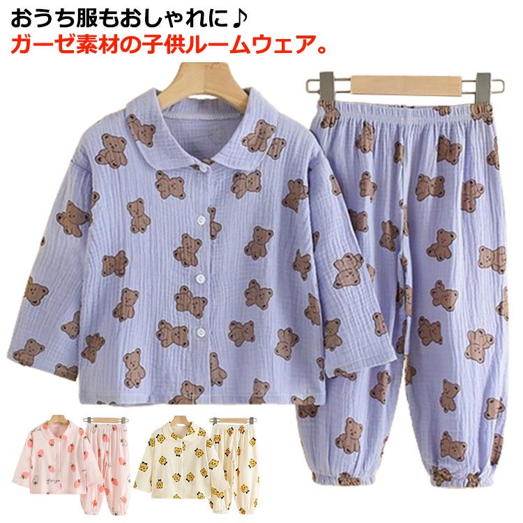 子ども パジャマ 長袖 ルームウェア 上下2点セット ダブル ガーゼ 総柄 薄手 涼しいキッズ ベビー マタニティ キッズファッション ナイトウェア ルームウェア パジャマ