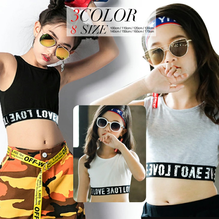 3カラー 8サイズ キッズ タンクトップ インナー へそ出し ブラック ホワイト グレー ダンス スポーツブラ ブラトップ 衣装 ショート丈