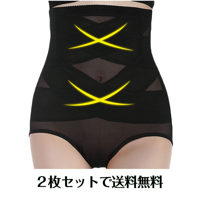 2点セット 補正下着 ガードル ショーツ ハイウエスト お腹 引き締め ぽっこりお腹 ボディシェイパー ヒップアップ 着圧 ウェストニッパー ダイエット コルセット 産後 骨盤 矯正ベルト クロスシェ