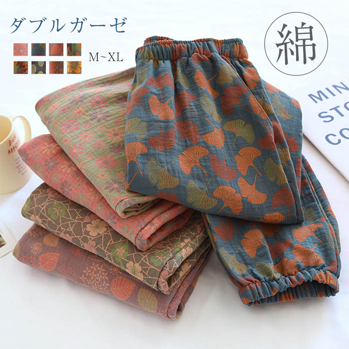 綿100% ガーゼ ルームウェアパンツ パジャマ レディース パジャマ ロングパンツ 単品 レディース 部屋着 寝間着 春 夏 秋 冬 寝巻き 快適 大きいサイズ ダブルガーゼ コットン