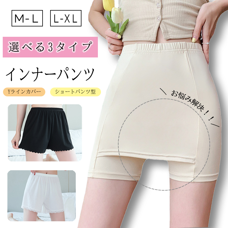 インナー Yラインカバー レディース ペチパンツ ペチコート パンツ Vライン 透け防止 黒 白 スカートインナーパンツ 股ズレ防止 ショート丈