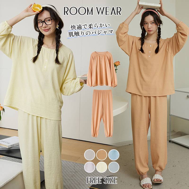 夏新作 レディースパジャマ ルームウェア 丸襟 涼しい 長袖 かわいい 夏用寝間着 パジャマ ナイトウェアシンプル可愛い お洒落 カジュアル 春 夏 秋 薄手
