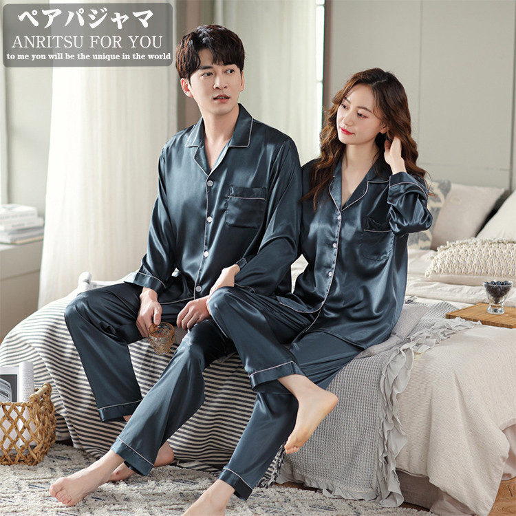 4カラー カップル ペア パジャマ シルク 結婚祝い ギフト プレゼント 友達 おしゃれ ナイトウェア 部屋着 お揃い 夫婦 記念日