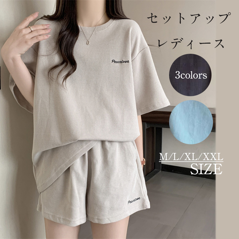 ルームウェア レディース 部屋着 パジャマ 上下セット トップス ショートパンツ 個性的 半袖 スクエアネック レース 無地 ピンク 黄色 白 青 紫 M L XL 2XL 春 夏 秋 カジュアル