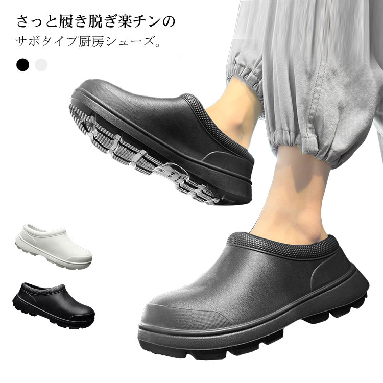 さっと履ける 軽い レディース サボシューズ サンダルタイプ 厨房 靴 くつ 滑りにくい ブラック 立ち仕事 メンズ おしゃれ 厨房靴 黒 白 シューズ ホワイト 軽量 コックシューズ