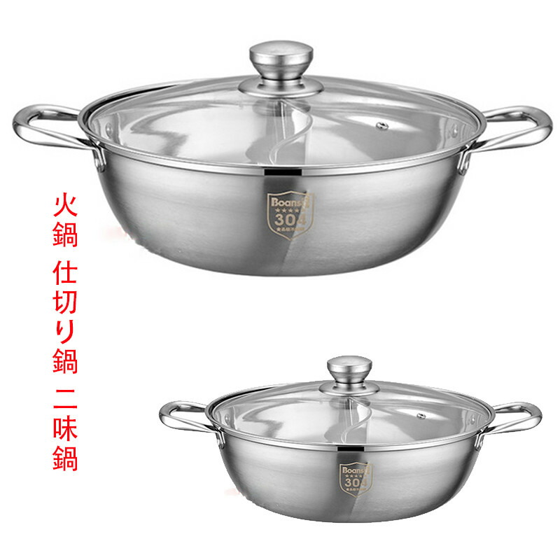 火鍋 仕切り鍋 二味鍋 ステンレス 対応 両手 仕切り 付き 2食 鍋 しゃぶしゃぶ鍋 卓上鍋家庭宴会用