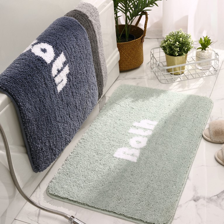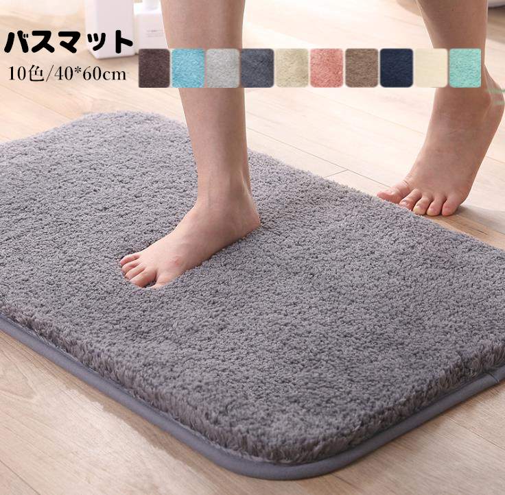 40cm×60cmバスマット4カラー足ふきマットおしゃれ韓国雑貨インテリアマット速乾お風呂グレー緑グリーンブルーネイビー紺北欧絨毯かわいい洗える室内タオル地柔らかい滑り止め吸水シンプルロゴデザイン大き