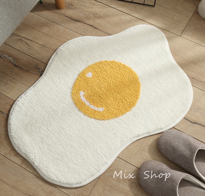 バスマット足ふきマットおしゃれ韓国雑貨インテリアマットお風呂ホワイト白イエロー黄色たまごエッグ目玉焼き北欧玄関マット絨毯かわいい洗える室内タオル地柔らかい滑り止め部屋ラグ シンプル45×65
