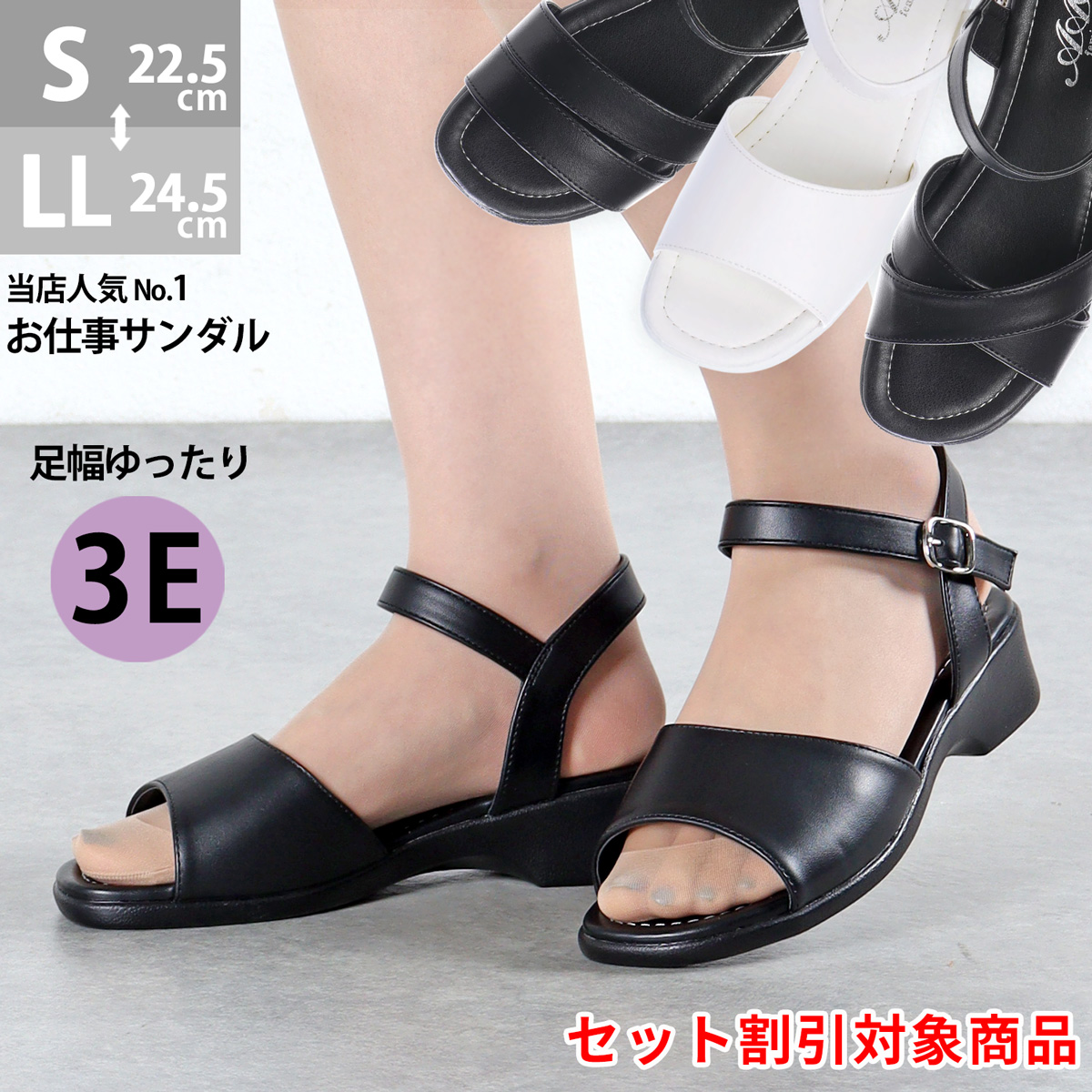 デザインが3種類から選べる 履き心地快適 通気性 お仕事 職場 足首ストラップ ダブルベルト ウエッジソール 楽 ビジネス 夏 かわいい おしゃれ