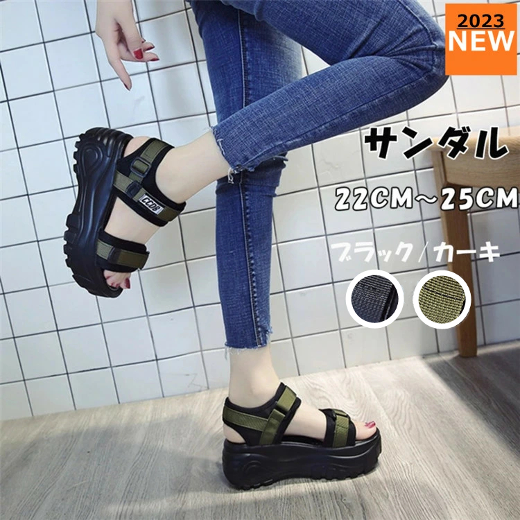再再入荷 スポーツサンダル レディース 厚底 サンダル 厚底 スポーツサンダル レディース サンダル 軽量 通気性 美脚 婦人靴 シンプル カジュアル ブラック グリーン 細見え 7cm高くなる
