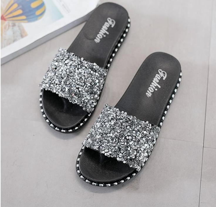 ぺたんこサンダルレディース靴 柔らかい素材スパンコールビーチサンダル コンフォートサンダルローヒールサンダル ペタンコレディース 靴 夏 歩きやすいフラットシューズ ビーサンビーチスリッパ