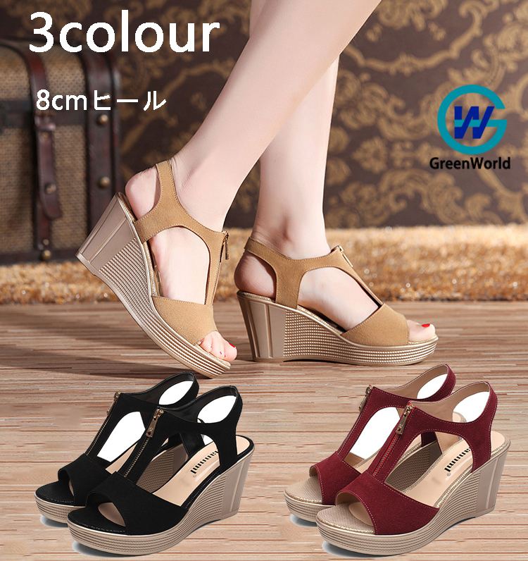 シンプル ナチュラル 大人カジュアル アンクルストラップ オープントゥ サンダル スエード調 夏 サマー ウエッジソール 厚底 レディース 靴