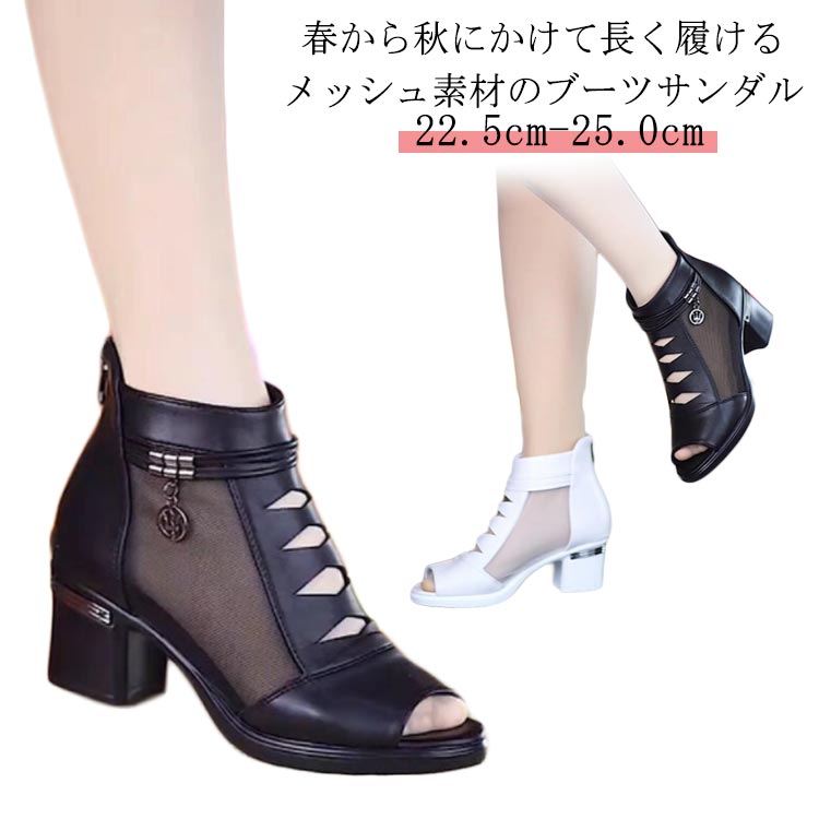 サマーブーツ ブーツサンダル レディース メッシュサンダル サマーサンダル メッシュ レディース レディースサンダル 黒 白 ブラック ホワイト