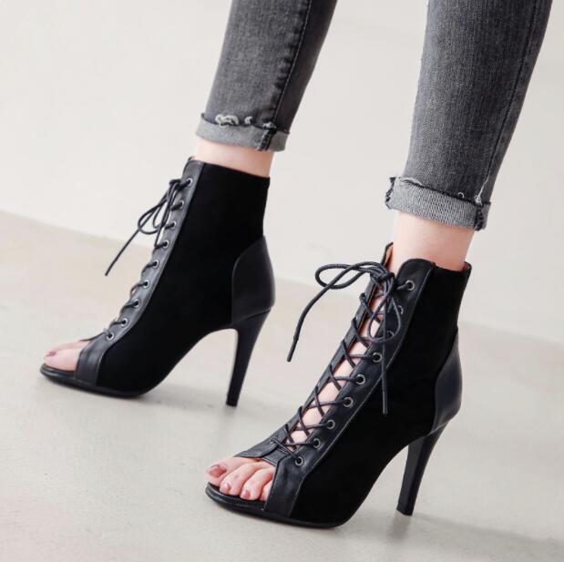 サマーブーツブーツサンダル長脚効果ブーツサンダルレディースショートブーツレースアップ サンダル夏サンダル