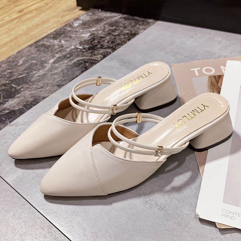ミュール4.5ヒールミドルヒールミュール サンダルレディース 靴 美脚 パーティ 履きやすい 歩きやすい ポインテッドトゥ太ヒール