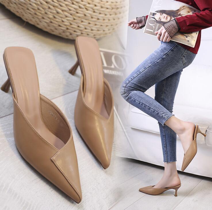 ポインテッドトゥ Vカット ミュール サンダル つっかけ スリッパ レディース ヒールサンダル靴 レディース靴 ミュール