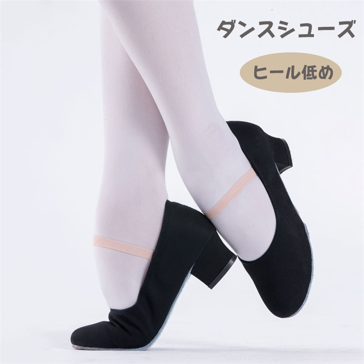 バレエ シューズ フォークダンス ダンスシューズ モダンダンス キャラクターシューズ 大人 レディース フラダンス 演奏 合唱 ジャズダンスシューズ 練習用 レッスン ブラック 低いヒール
