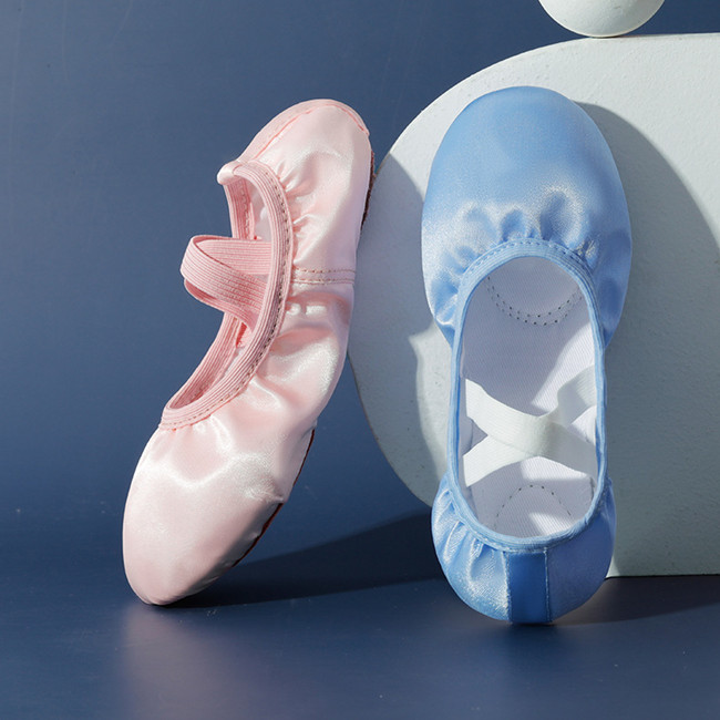バレエシューズ 女の子 子供靴 ダンス 可愛い サテン プレゼント 子供 大人 履きやすい 柔らかい 練習用 ステージ レッスン ピンク シェルピンク ブルー -286