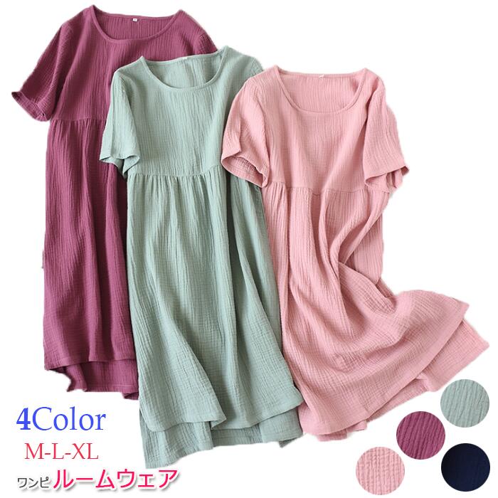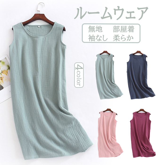 ルームウェア パジャマ レディース ワンピース 無地 寝間着 部屋着 寝巻き 柔らか タンクトップ 袖なし 女性 半袖タイプ追加 ファッション