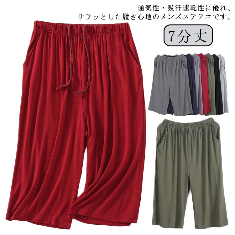 ワイドパンツ ひざ下 7分丈 ステテコ 夏用 無地 リラックス イージーパンツ ルームウェア メンズ