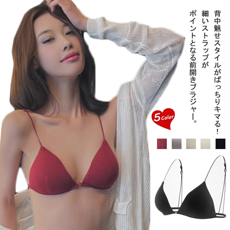 前開きタイプ 三角ブラ フロントホック 背中 ブラジャー ノンワイヤー 開き ブラ 無地 フロントホック