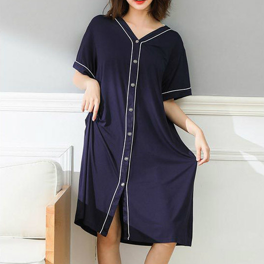 レディース部屋着ルームウェアワンピースVネックミモレ丈膝下丈半袖春夏ゆったりリラックスナイトウェアパジャマ寝間着フェミニン大人可愛い