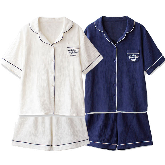 柔らかくて着心地がよい パジャマ メンズ 夏用 ガーゼ 半袖七分ズボン ハーフパンツ 前開き パジャマ 綿 ガーゼパジャマ メンズ 綿100% 半袖 春 夏 前開き ボタン お揃い ペアルック