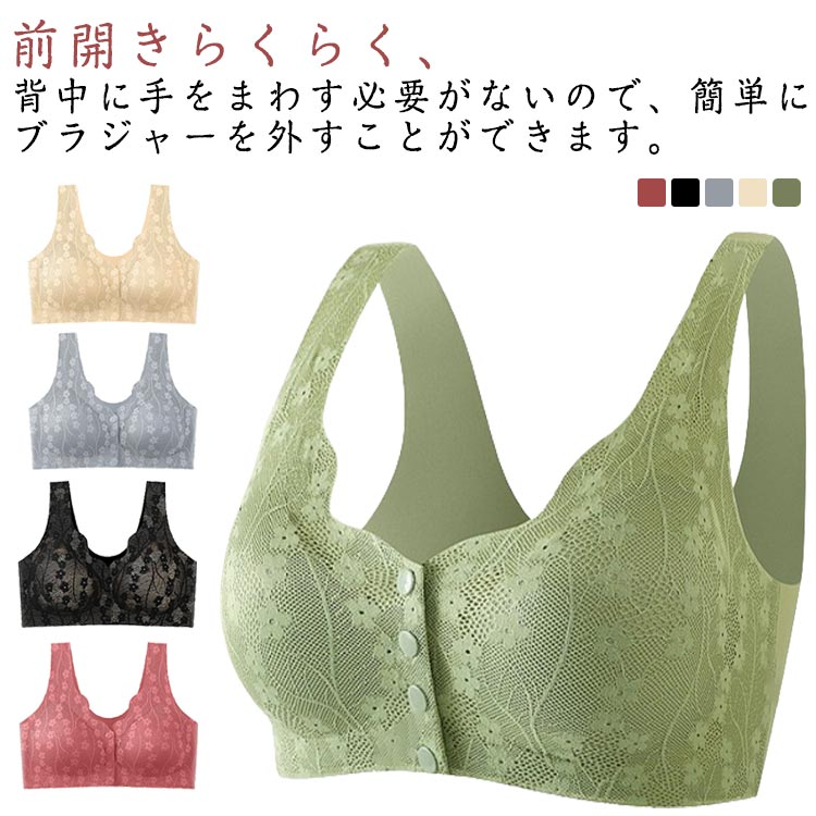 ブラ 乳がん フロントホック フロントホック 前開き ブラジャー 大きいサイズ ノンワイヤー シニア ブラジャー レースブラ ストレッチ 大きいサイズ 2枚入り