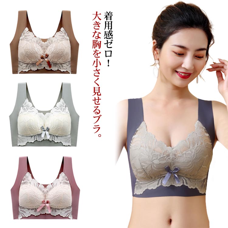 胸を小さく見せるブラ 痛くない ノンワイヤーブラ 締め付けない レース 伸縮性 伸縮性 着痩せブラインナー 下着 ナイトウェア レディース インナー 下着 ランジェリー ブラジャー