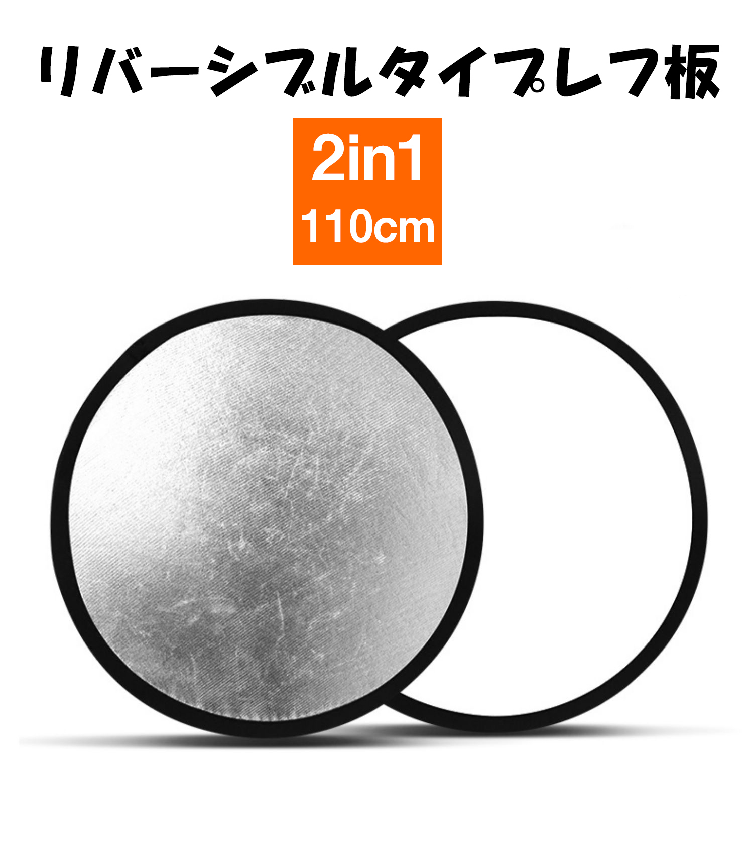 撮影用レフ板 110cm 2in1 シルバー&ホワイト 白枠 カメラ レフ板 リフレクター 反射 ブツ撮り 物撮り