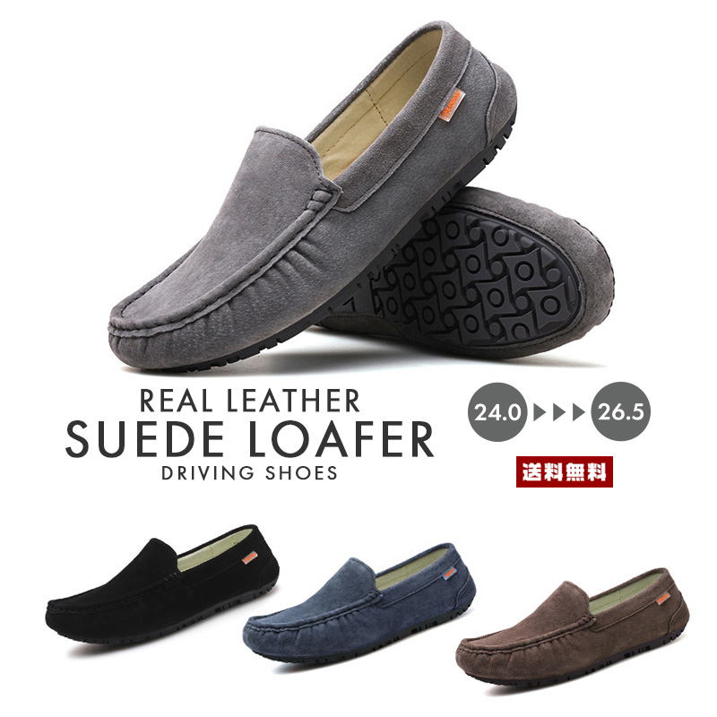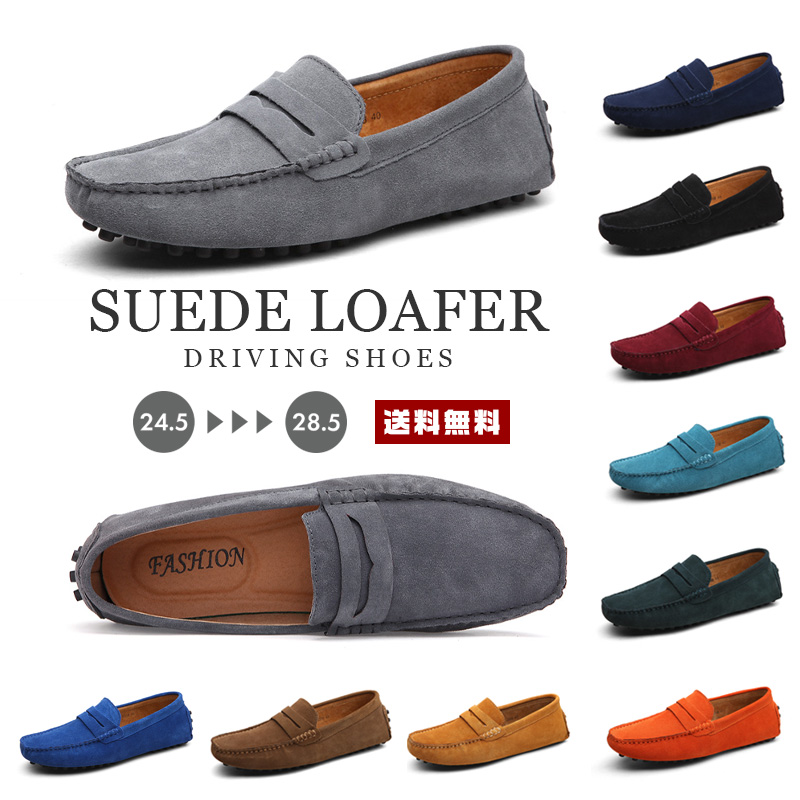 メンズ スウェード ローファー ドライビングシューズ【靴 シューズ スエード バックスキン レザー 革 皮 素足 デッキ スリッポン カラー豊富 大きいサイズ ビッグ シンプル カジュアル 定番 人気