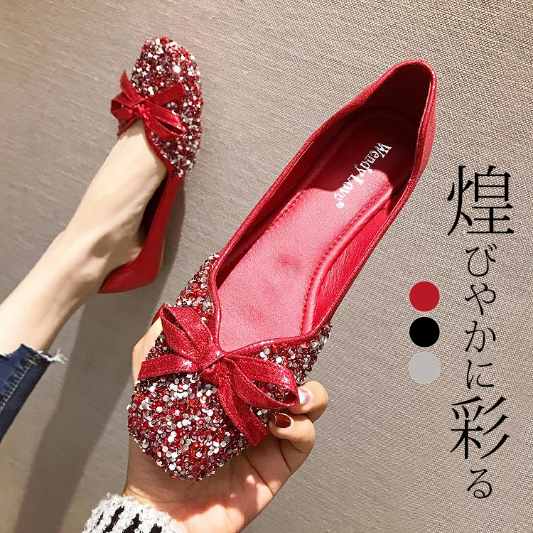 新色発表キラキラ輝くビジューが足元をゴージャスに彩る フラットシューズで歩きやすく気軽におしゃれを楽しめます♪