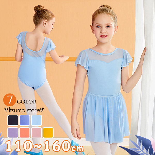 バレエ レオタード 子供 スカート付き 14カラー 子供レオタード 衣装 かわいい ダンス 股下スナップ 女の子 女児 ジュニア 練習着 演出用 発表会 レッスン着 スカート付き 体操 半袖 袖あり
