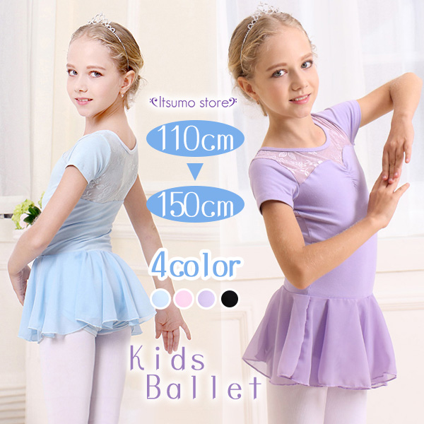 バレエ レオタード 子供 スカート付き レース 黒 子供 バレエ レオタード 子供 半袖 ジュニア コットン 綿 ストレッチ 伸縮 練習 レッスン着 新体操 水色 ブラック 黒 ピンク 演出用 100