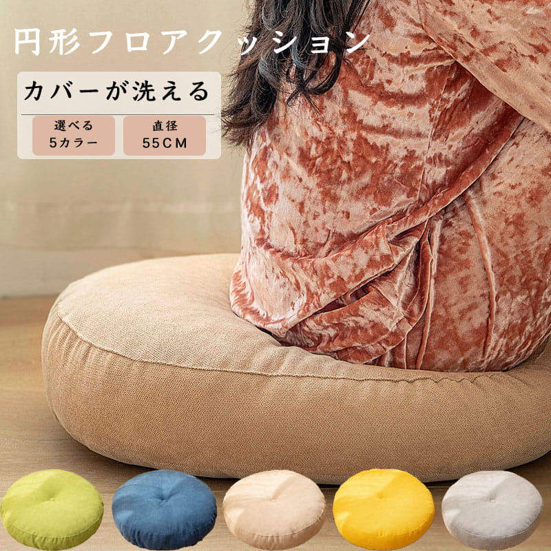 クッション 座布団 洗える 丸型 直径55 フロアクッション おしゃれ シンプル 北欧 チェアパッド 一人暮らし 女子 部屋 インテリア 雑貨 かわいい 春夏秋冬 さぶとん コットン 綿 分厚い