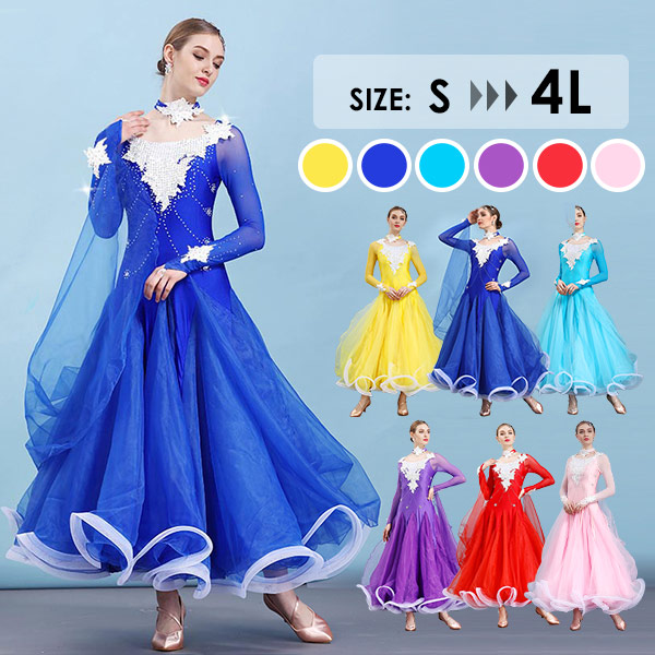 社交ダンス モダンドレス 社交ダンス衣装 大きいサイズ 広がる裾 ダンス発表会 練習着 演出用 大量注文にも対応しています