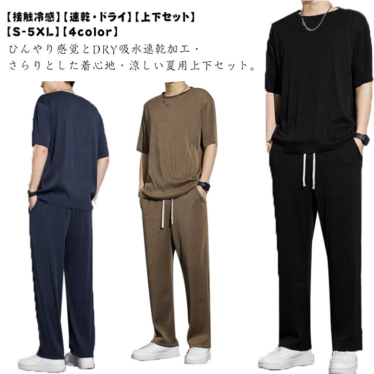 涼しい 半袖 涼しい シャツ 透けない 上下 トレーニングウェア サラサラ スポーツウェア シンプル クルーネック ワイドパンツ