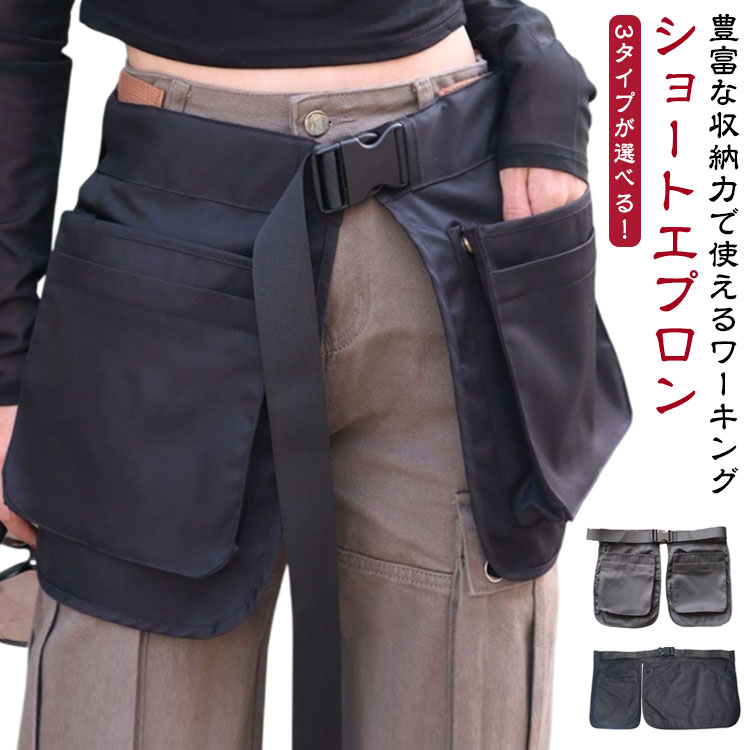 カフェエプロン キッチン 無地 ショート丈 ガーデニング スタイリストエプロン キャンプ アウトドア ユニフォーム ウエスト調整 着脱簡単 誕生日 プレゼント
