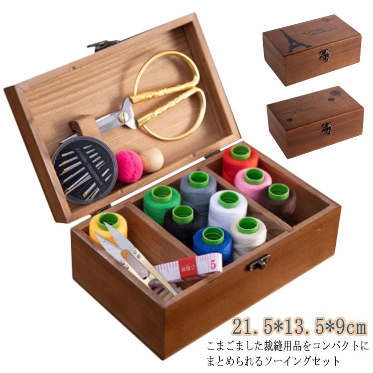 木製裁縫箱 収納ボックス 木製裁縫箱 大容量 21.5*13.5*9cm日用品雑貨 文房具 手芸 手芸 クラフト 生地 道具 キット 裁縫道具 ソーイングセット