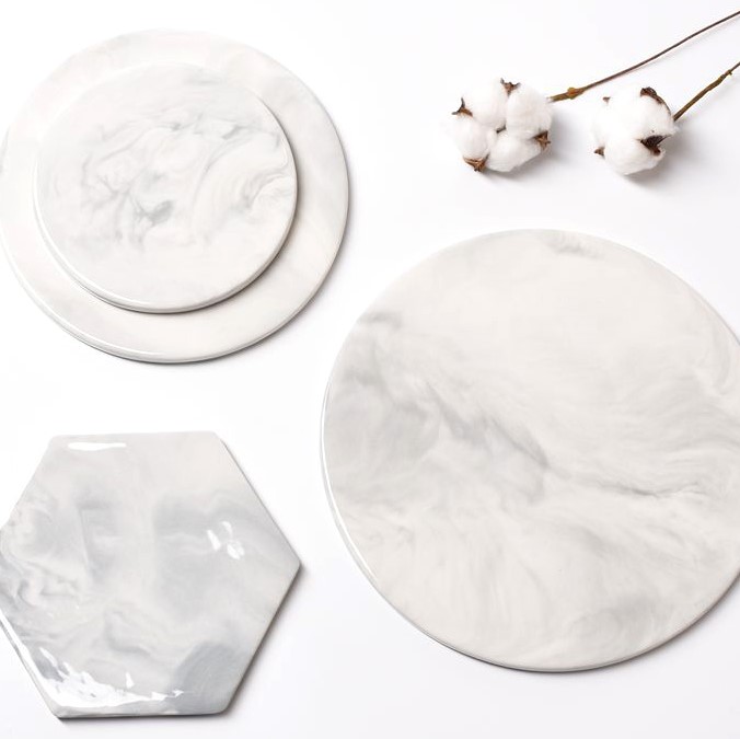 大理石風マルチプレート2デザイン韓国雑貨北欧インテリアディスプレイアンティーク可愛いおしゃれ収納小物入れアクセサリー小さい小さめ整理ケース卓上トレイ丸円四角六角形時計鍵香水シンプルキャンドル