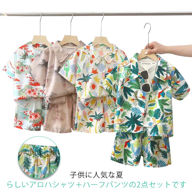 2点セット キッズ 子供服 ベビー服 男の子 アロハシャツ ジュニア 上下セットキッズ ベビー マタニティ キッズファッション トップス シャツ ブラウス