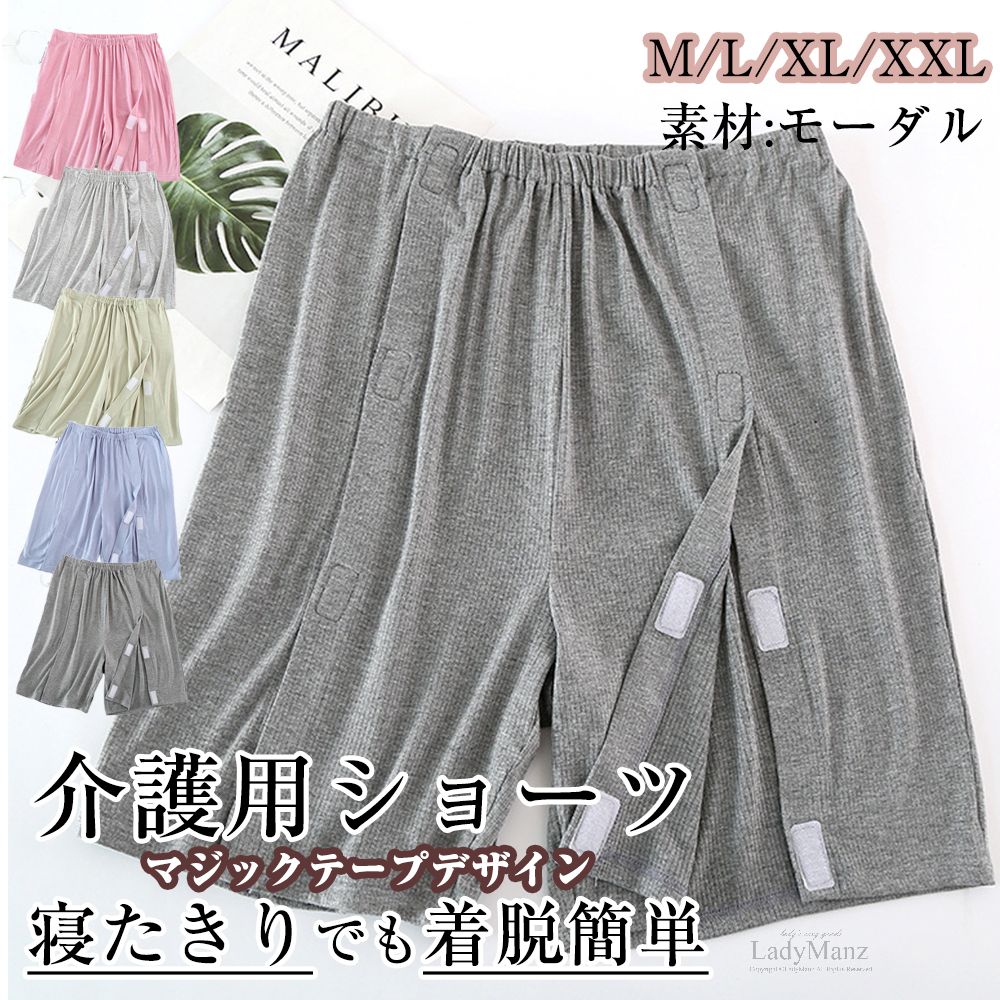 "5分丈 M L XL XXL 身体の不自由な方や着替えが困難な方向けのフルオープンショーツ マジックテープで、片手でも簡単着脱ぎができます "